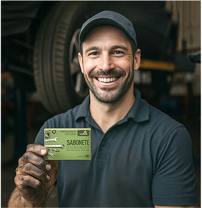 Eficiência e Rendimento: Menos tempo na pia, mais tempo para o que realmente importa. A barra de 90g é compacta, mas poderosa e concentrada, garantindo um alto rendimento que dura muito mais que sabonetes comuns. É o melhor custo-benefício para a sua oficina.